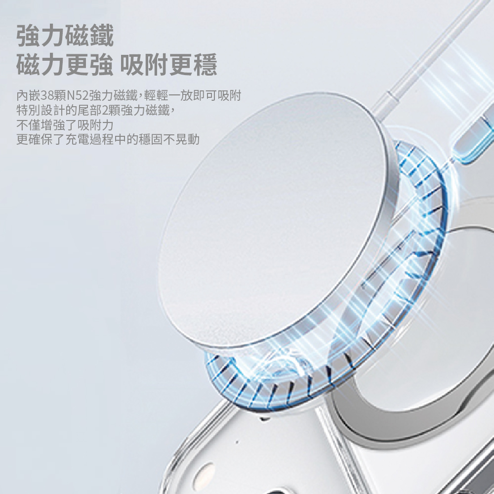 •圓環內嵌38顆N52強力磁鐵,尾部多增加2顆,增強吸附力,更好固定充電設