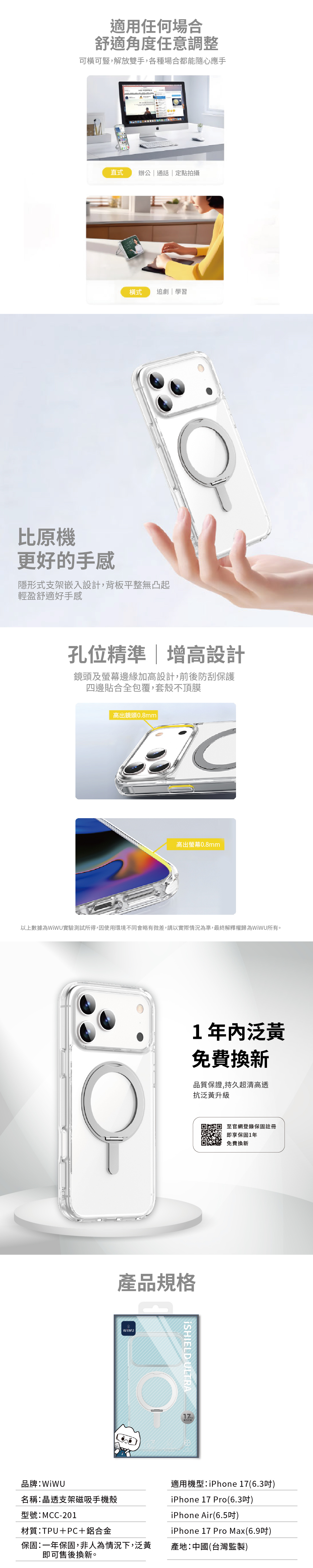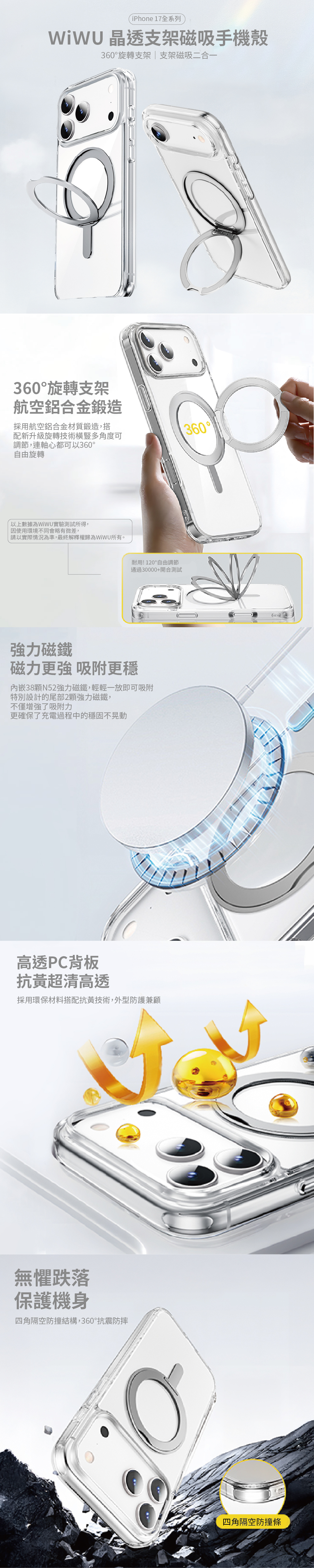 WiWU 晶透支架磁吸手機殼iPhone 17 Pro Max(6.9吋)-透明