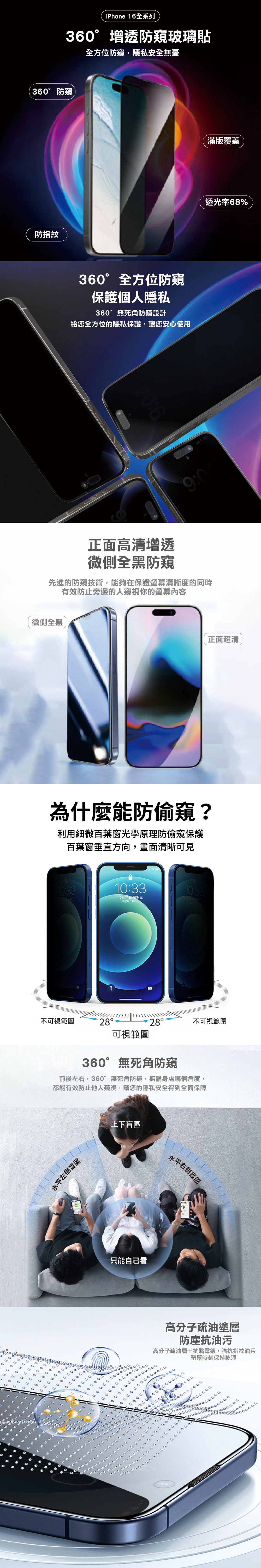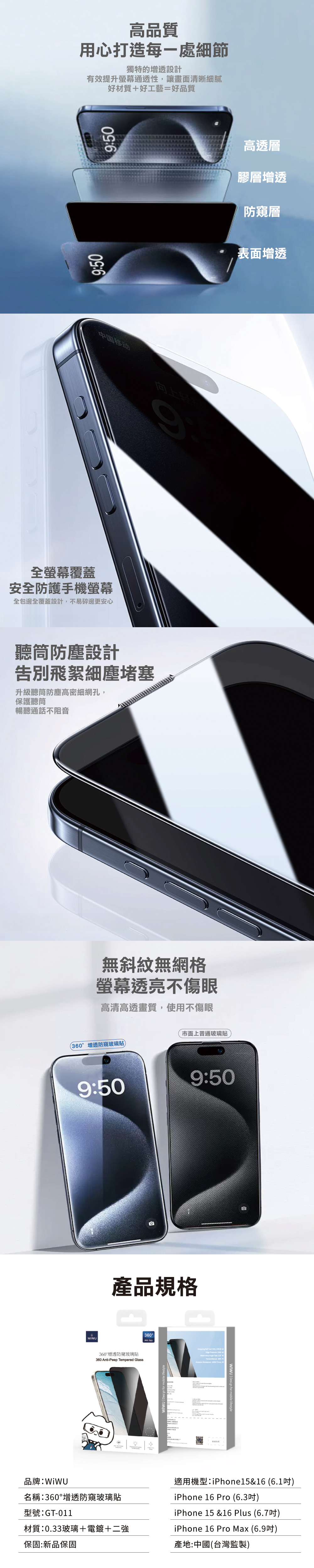 WIWU 360°增透防窺玻璃貼IPHONE 15&16 PLUS (6.7吋)