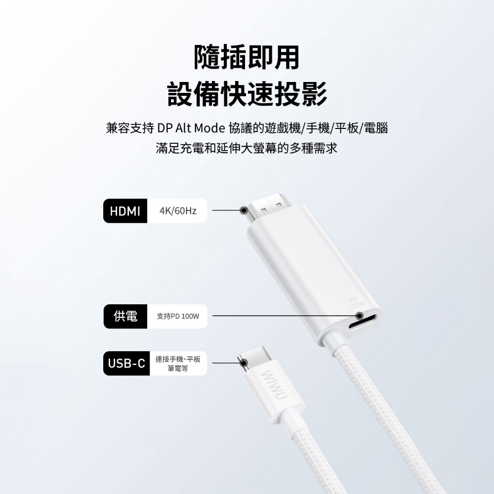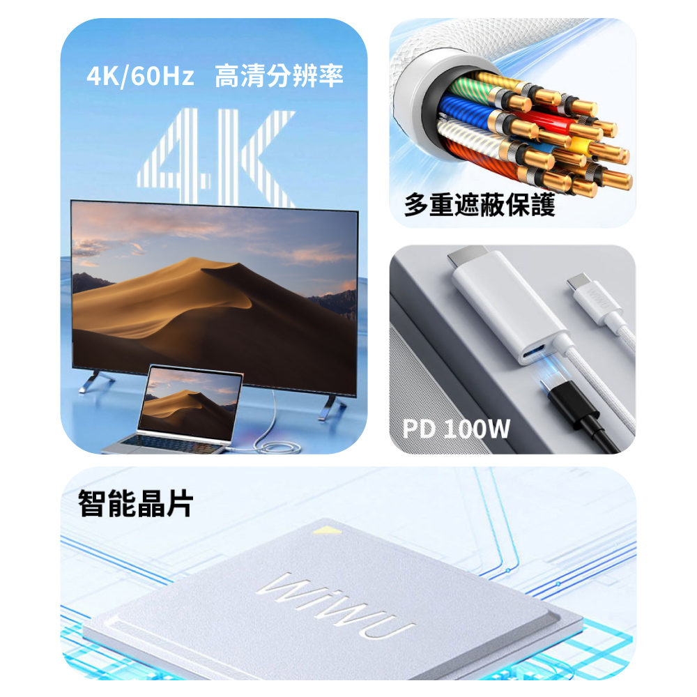 WiWU Type-C to HDMI PD快充轉接線 Wi-PS001