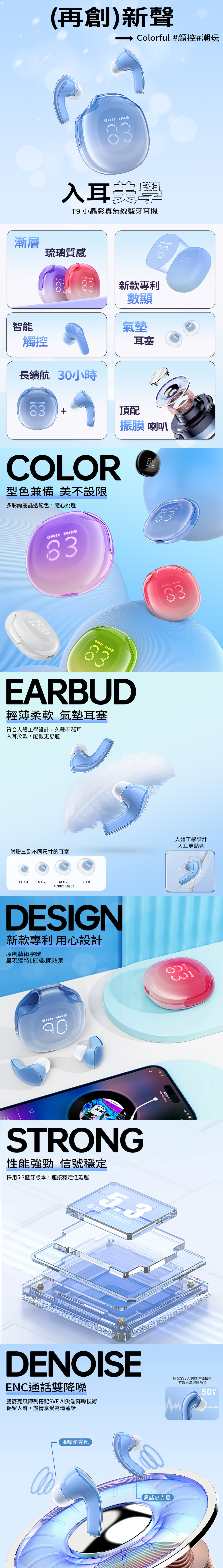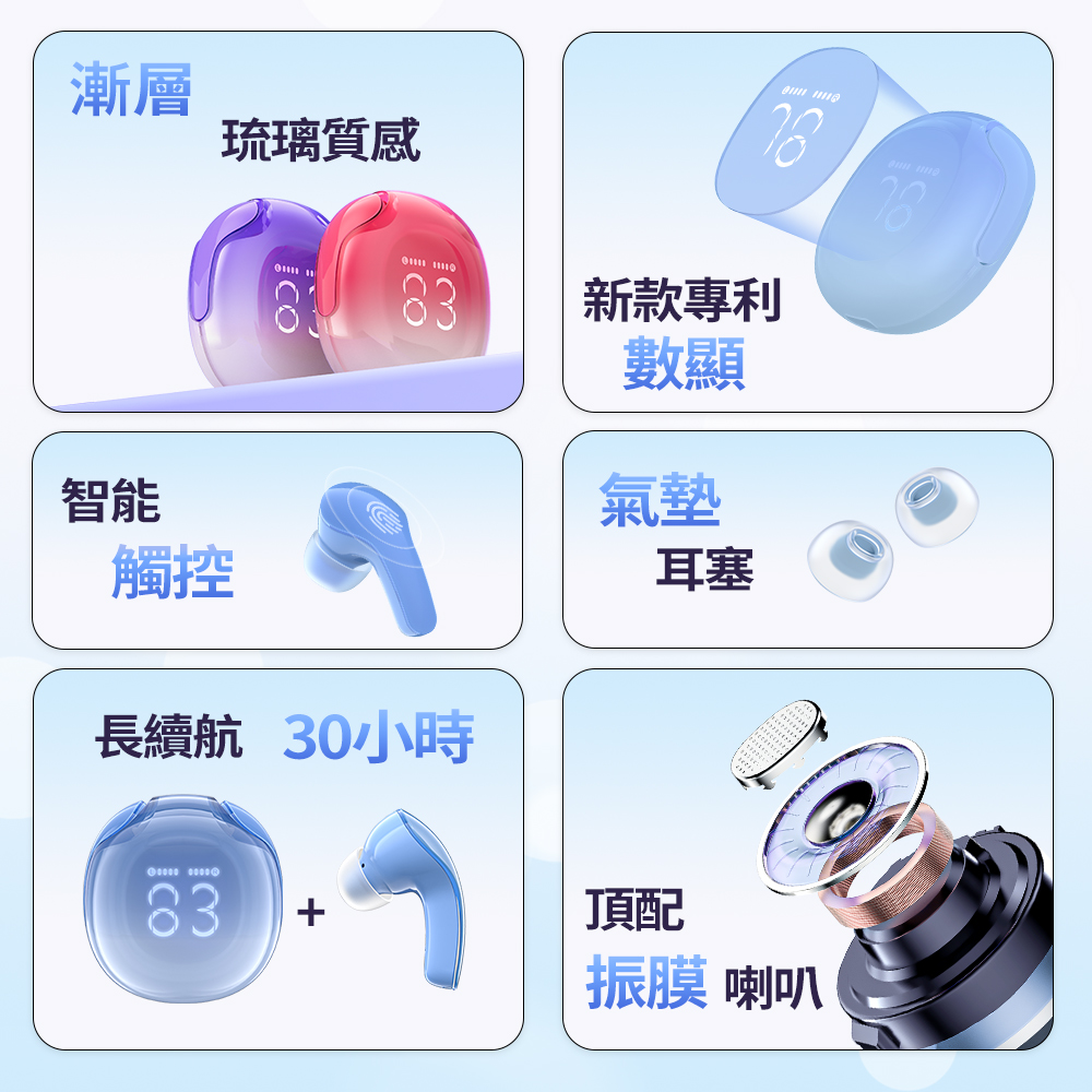 ACEFAST CRYSTAL T9 小晶彩真無線藍牙耳機 - 冰川藍