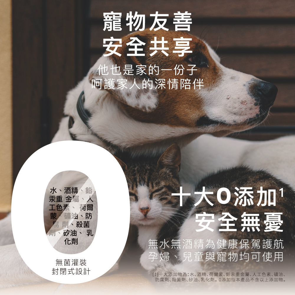 • 無水無酒精,寵物友善安全共享