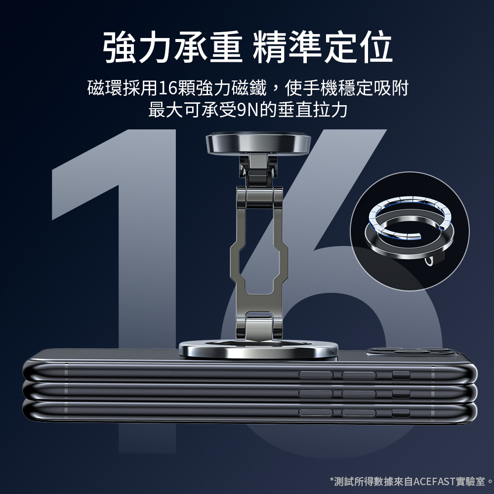 •環形磁線圈精準定位,採用16顆強力磁鐵,穩定吸附
