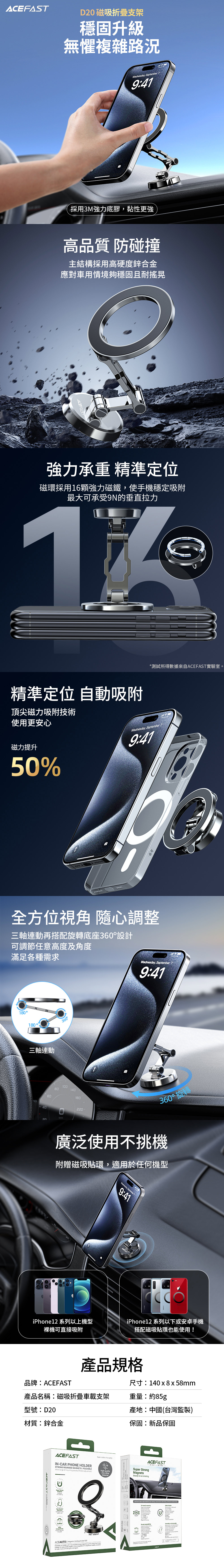ACEFAST 磁吸折疊車載支架D20-金屬灰