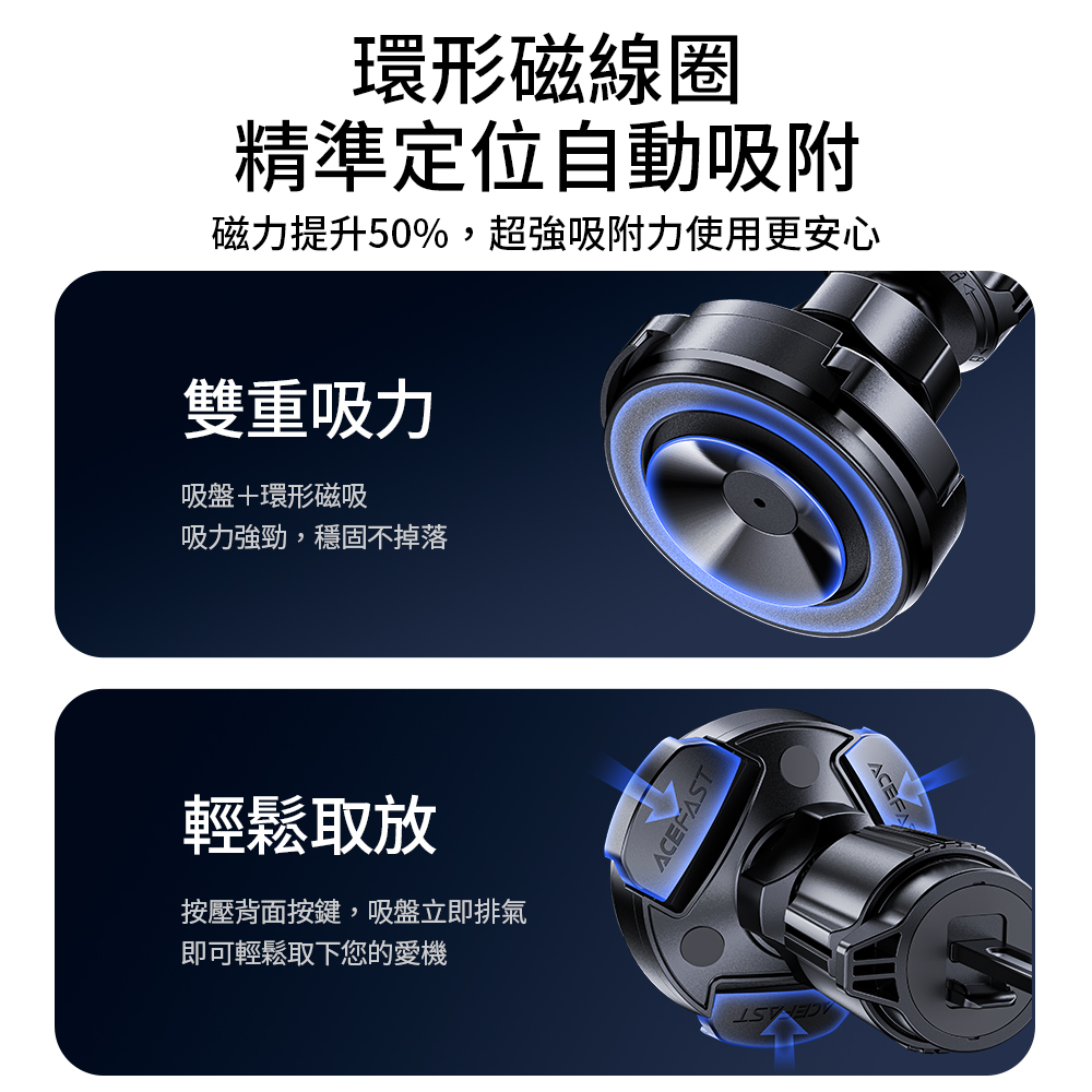 •磁吸+吸盤雙倍吸力,穩吸不掉落