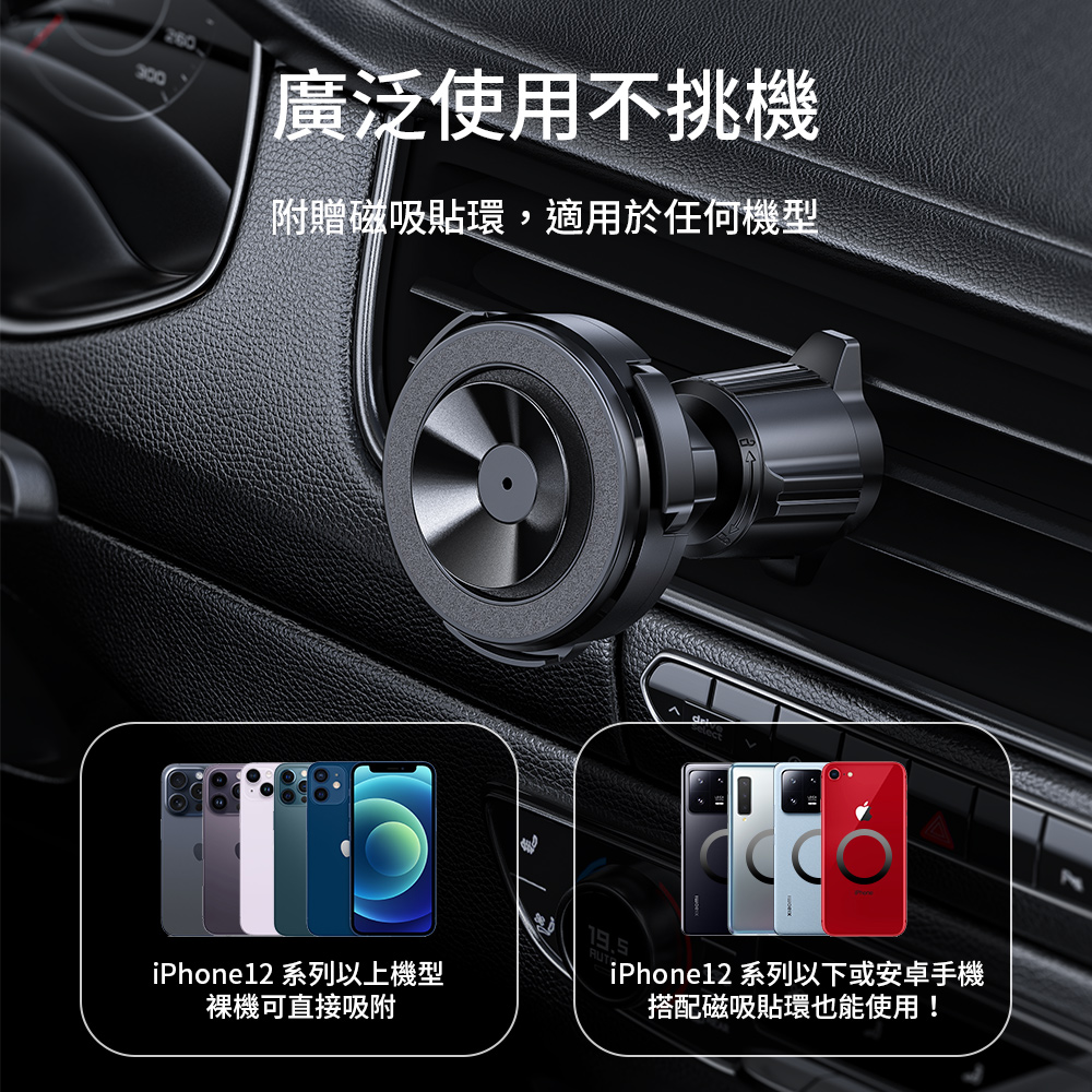 •全機型適用,MagSafe機型可同時使用磁吸+吸盤,